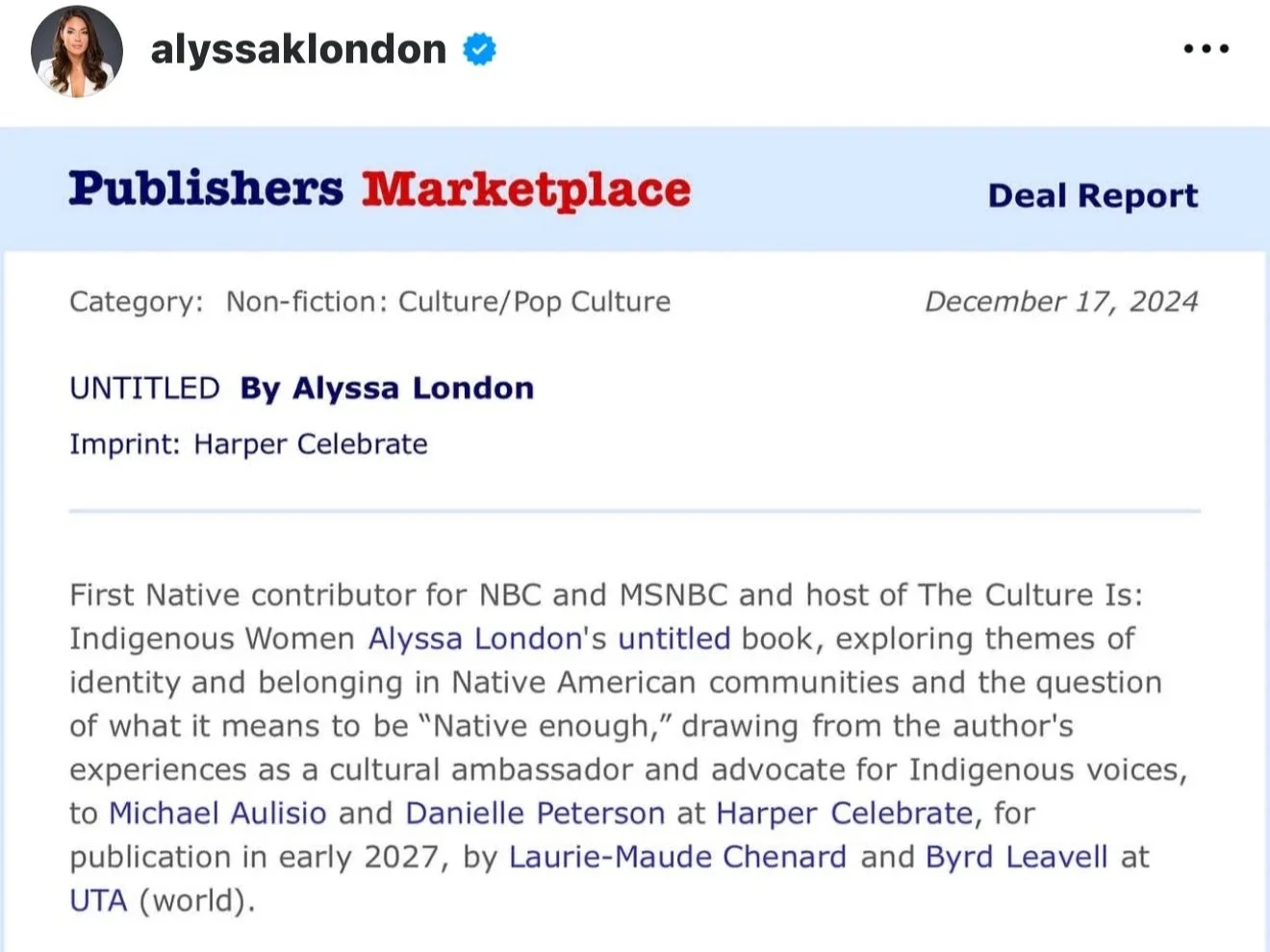 My first non-fiction book is with Harper Collins Celebrate and it is part memoir and part what I want people to know about Indigenous culture today.
